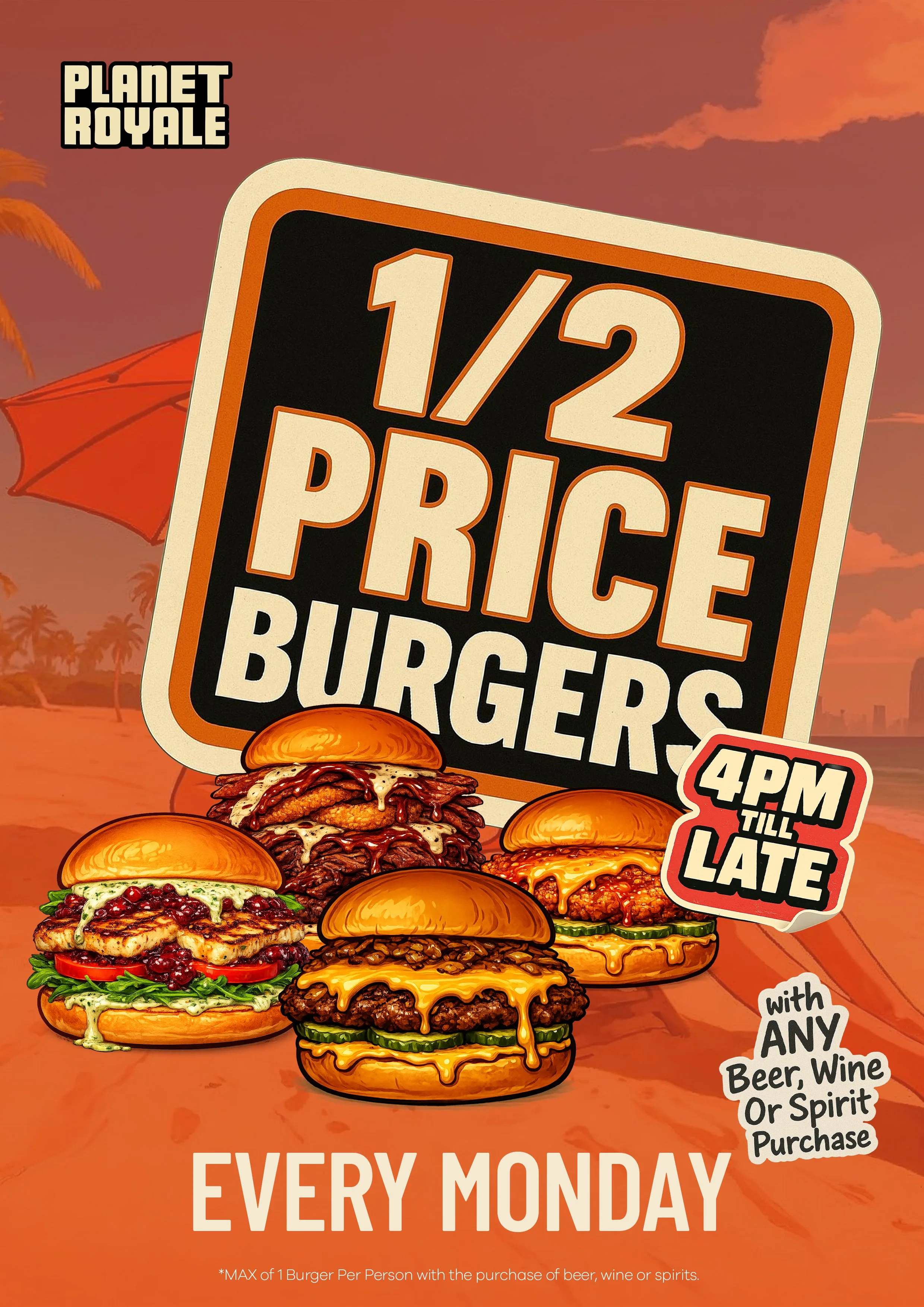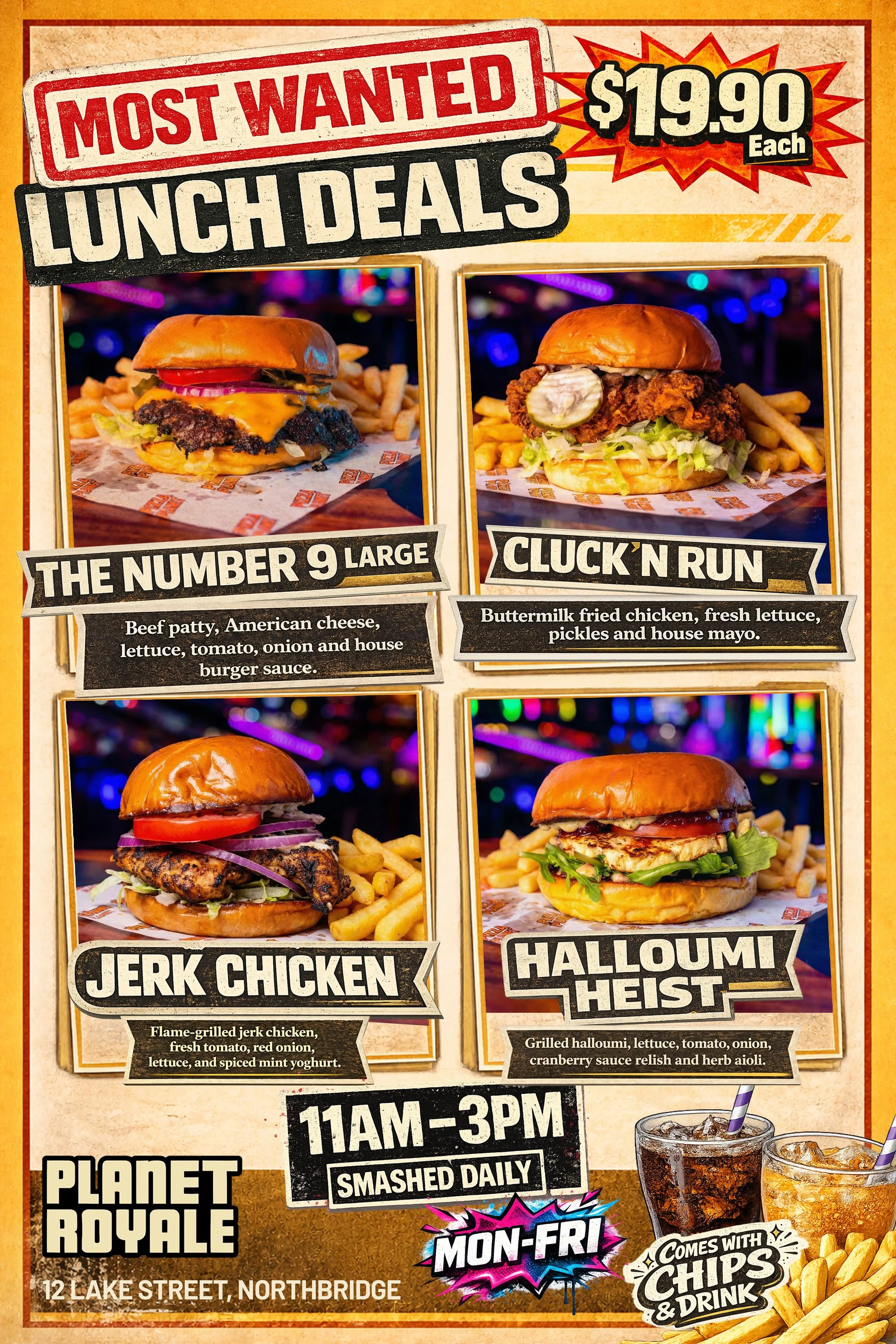CHECK OUT OUR NEW DAILY DEALS 〰️ CHECK OUT OUR NEW DAILY DEALS 〰️ CHECK OUT OUR NEW DAILY DEALS 〰️ Slide 1 Slide 1 (current slide) Slide 2 Slide 2 (current slide) Slide 3 Slide 3 (current slide) Slide 4 Slide 4 (current slide) Slide 5 Slide 5 (current slide) Slide 6 Slide 6 (current slide) 7 DAYS OF DEALS MONDAY 1/2 PRICE BURGERS $1 HOT SLICE MONDAY LUNCH SPECIALS MON - FRI THURSDAY ALL YOU CAN PLAY $25 FREE JUG THURSDAYS $5 WINGS BASKET WEDNESDAYS $10 Loaded Fries Friday Slide 1 Slide 1 (current slide)